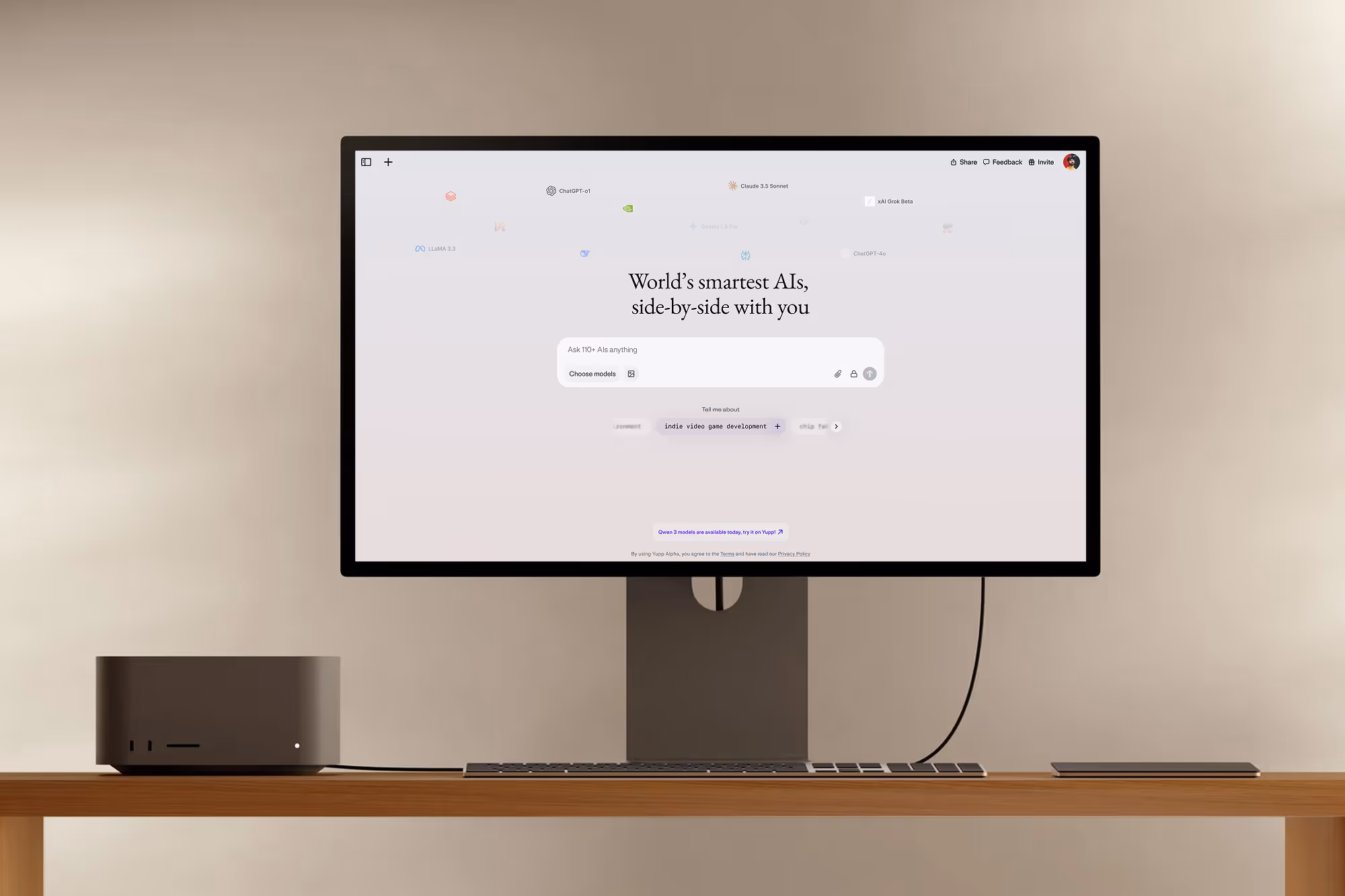 Yupp brings hundreds of AIs together in one place. Extending the car metaphor, we designed this to be self-driving first: by default, the system picks the best AI for your prompt.