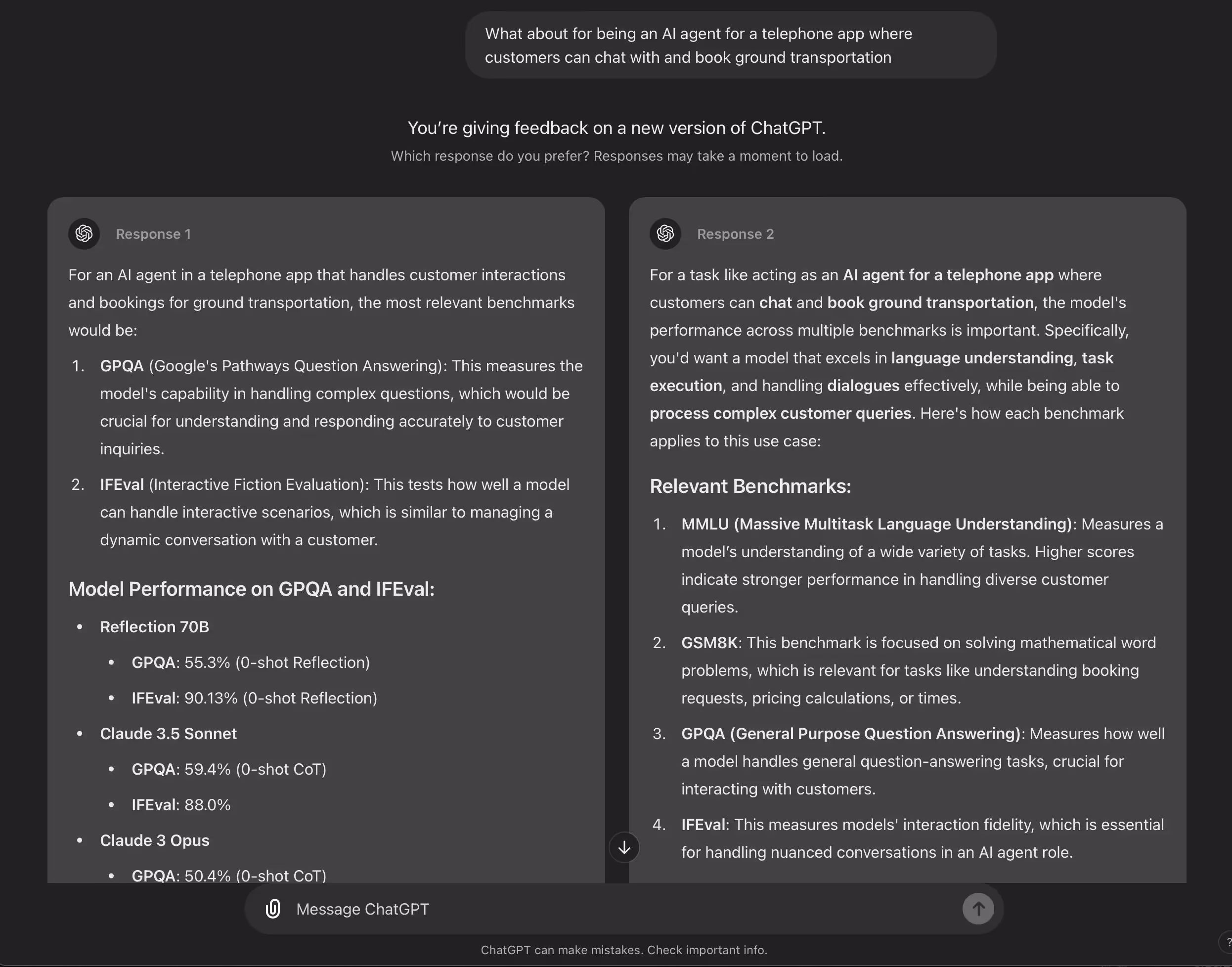 But ChatGPT, like all model providers, lacks the capability to compare its models to peers.