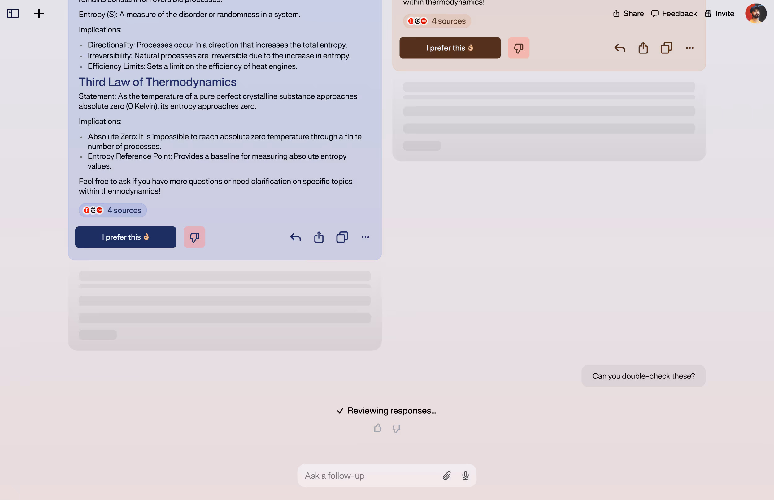 Yupp lets you compare multiple AI responses side by side, then choose which you prefer to win credits that you can use to send more prompts.